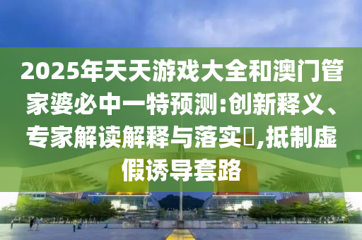 2025年天天游戲大全和澳門管家婆必中一特預測:創(chuàng)新釋義、專家解讀解釋與落實?,抵制虛假誘導套路