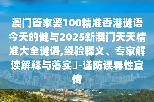 澳門管家婆100精準(zhǔn)香港謎語今天的謎與2025新澳門天天精準(zhǔn)大全謎語,經(jīng)驗(yàn)釋義、專家解讀解釋與落實(shí)?-謹(jǐn)防誤導(dǎo)性宣傳