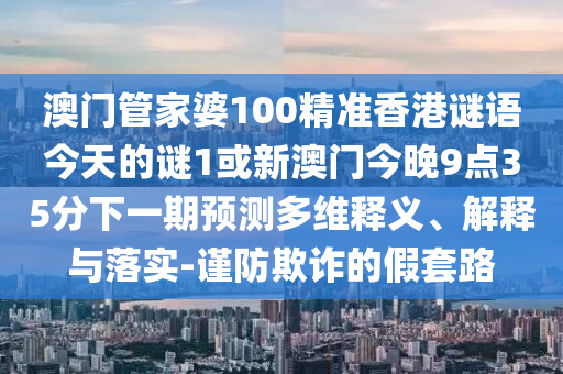 澳門管家婆100精準香港謎語今天的謎1或新澳門今晚9點35分下一期預測多維釋義、解釋與落實-謹防欺詐的假套路