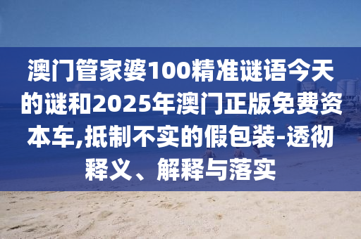 澳門管家婆100精準謎語今天的謎和2025年澳門正版免費資本車,抵制不實的假包裝-透徹釋義、解釋與落實