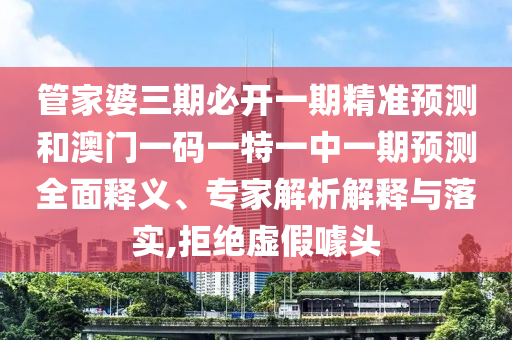 管家婆三期必開一期精準預測和澳門一碼一特一中一期預測全面釋義、專家解析解釋與落實,拒絕虛假噱頭