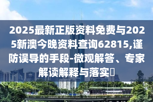2025最新正版資料免費(fèi)與2025新澳今晚資料查詢62815,謹(jǐn)防誤導(dǎo)的手段-微觀解答、專家解讀解釋與落實?
