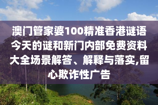 澳門管家婆100精準香港謎語今天的謎和新門內(nèi)部免費資料大全場景解答、解釋與落實,留心欺詐性廣告