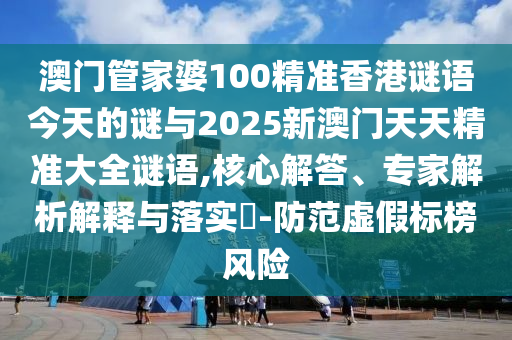 澳門管家婆100精準(zhǔn)香港謎語今天的謎與2025新澳門天天精準(zhǔn)大全謎語,核心解答、專家解析解釋與落實(shí)?-防范虛假標(biāo)榜風(fēng)險(xiǎn)