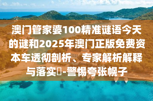 關(guān)于澳門(mén)管家婆100精準(zhǔn)謎語(yǔ)、2025年澳門(mén)正版免費(fèi)資本車(chē)等相關(guān)內(nèi)容的透徹剖析、專(zhuān)家解析解釋與落實(shí),以及警惕虛假宣傳、夸張幌子的文章