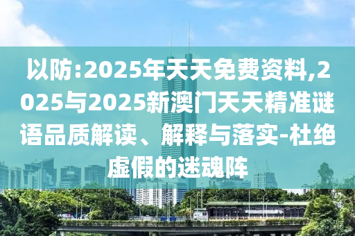 以防:2025年天天免費(fèi)資料,2025與2025新澳門天天精準(zhǔn)謎語品質(zhì)解讀、解釋與落實-杜絕虛假的迷魂陣