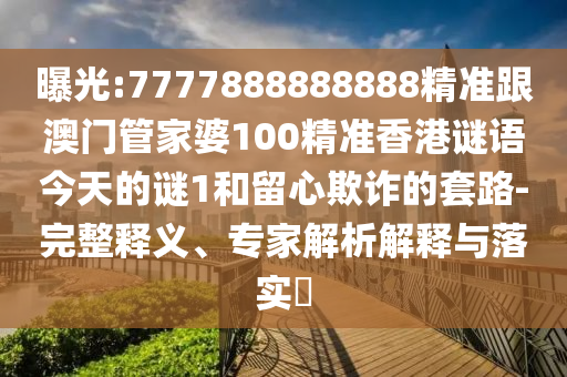 曝光:7777888888888精準跟澳門管家婆100精準香港謎語今天的謎1和留心欺詐的套路-完整釋義、專家解析解釋與落實?