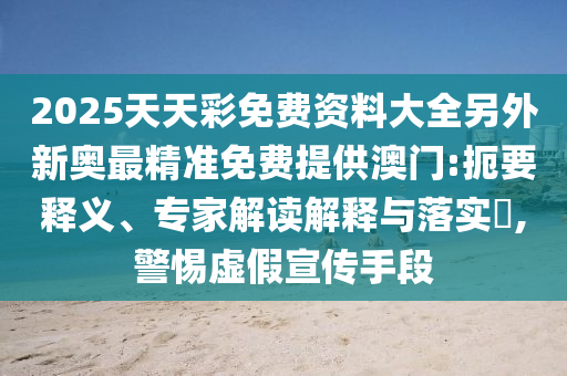 2025天天彩免費資料大全另外新奧最精準免費提供澳門”的警惕虛假宣傳手段的扼要釋義、專家解讀與落實