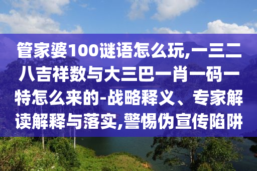 管家婆100謎語怎么玩,一三二八吉祥數(shù)與大三巴一肖一碼一特怎么來的-戰(zhàn)略釋義、專家解讀解釋與落實(shí),警惕偽宣傳陷阱