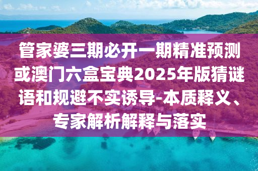 管家婆三期必開一期精準(zhǔn)預(yù)測(cè)或澳門六盒寶典2025年版猜謎語本質(zhì)釋義、專家解析解釋與落實(shí)和規(guī)避不實(shí)誘導(dǎo)”的全面解析