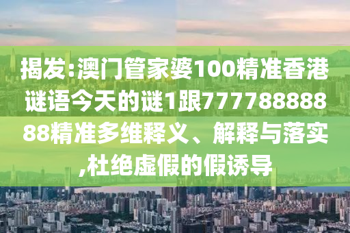 揭發(fā):澳門管家婆100精準(zhǔn)香港謎語今天的謎1跟77778888888精準(zhǔn)多維釋義、解釋與落實(shí),杜絕虛假的假誘導(dǎo)