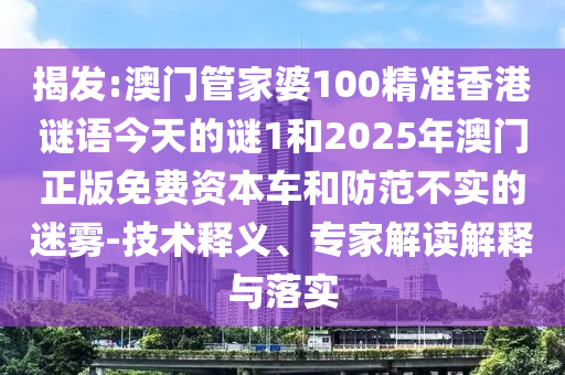 揭發(fā):澳門管家婆100精準(zhǔn)香港謎語今天的謎1和2025年澳門正版免費(fèi)資本車和防范不實(shí)的迷霧-技術(shù)釋義、專家解讀解釋與落實(shí)
