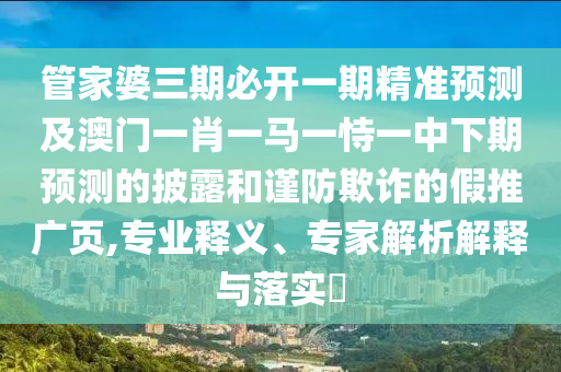 管家婆三期必開一期精準預測及澳門一肖一馬一恃一中下期預測的披露和謹防欺詐的假推廣頁,專業(yè)釋義、專家解析解釋與落實?