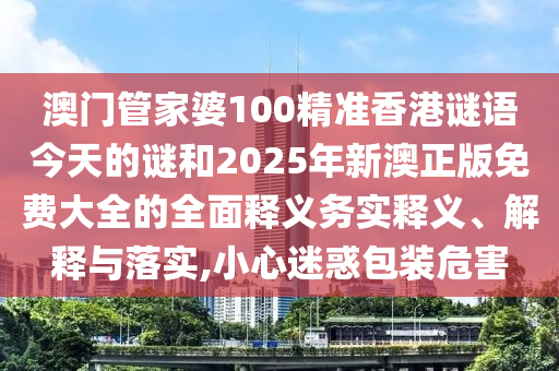 關(guān)于澳門管家婆100精準(zhǔn)香港謎語、2025年新澳正版免費大全的全面釋義、解釋與落實——警惕虛假宣傳與迷惑包裝的危害